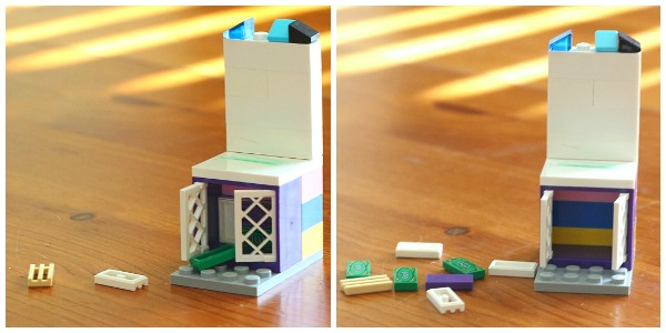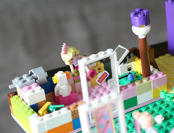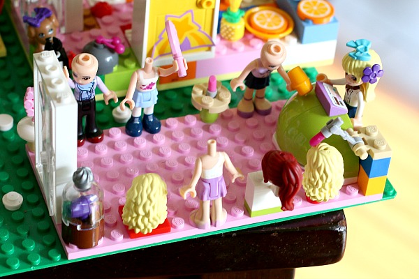 This is my fashion store. Lego Friends can only do it. Just regular Legos can only get hair and makeup. Don’t worry- those are not Lego girls with bald heads. Those are just models with clothes Lego friends can buy.