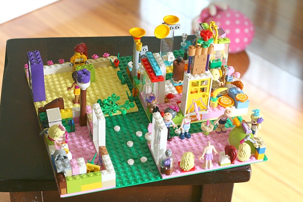 This is my Lego store. I chose four stores to build. I have a flower store, a toy store, a clothes store, and just a Lego mall.